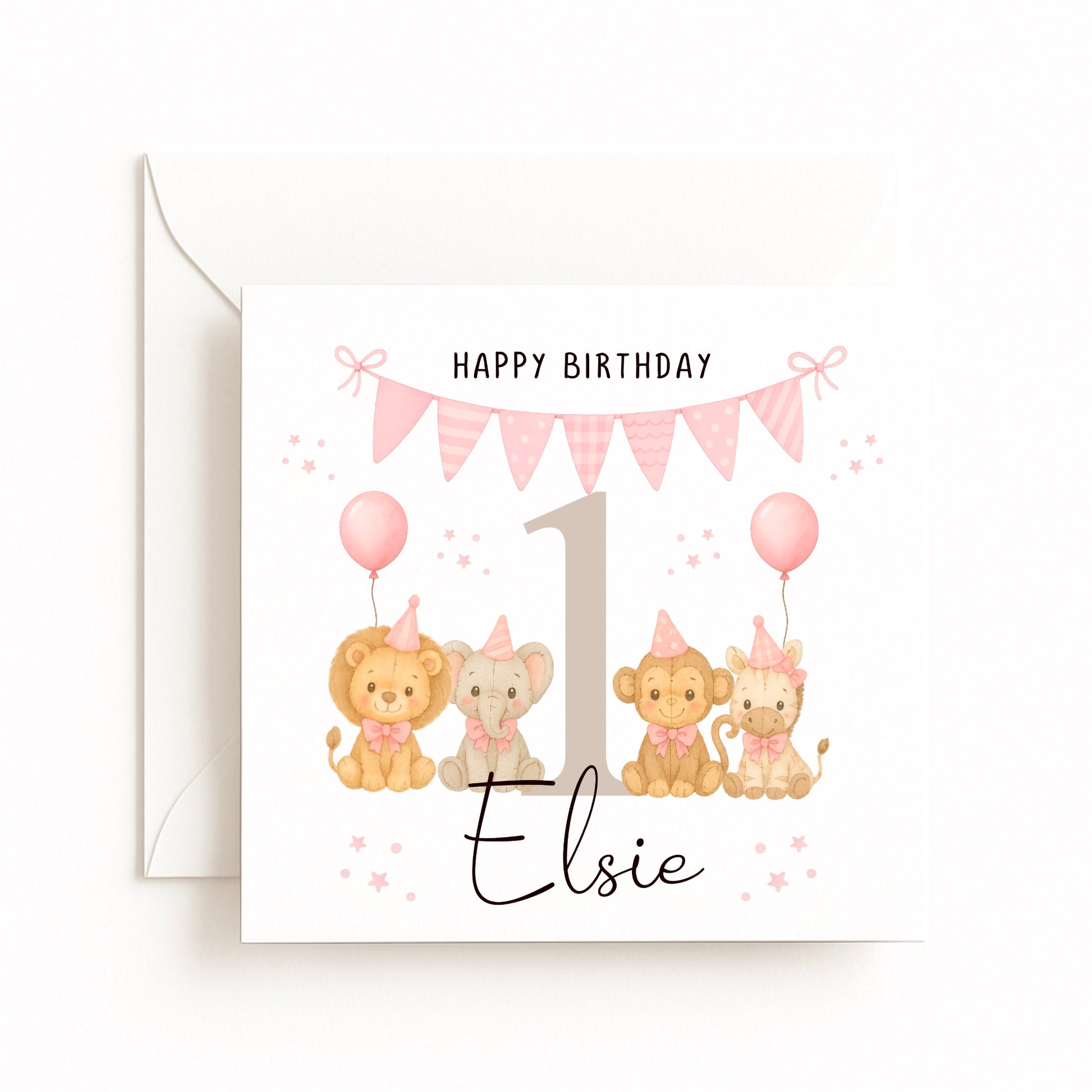 Celebrate her special day with this personalised birthday card featuring a sweet pink bunting design. Perfect for daughters, granddaughters, nieces, or goddaughters, this card is customised with their name and age for a thoughtful keepsake.