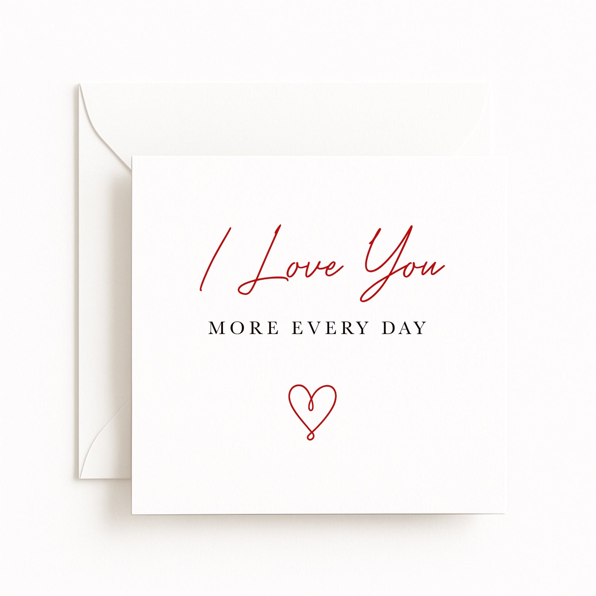 A sweet and modern “I Love You More Every Day” card, perfect for Valentine’s Day, anniversaries or just because.