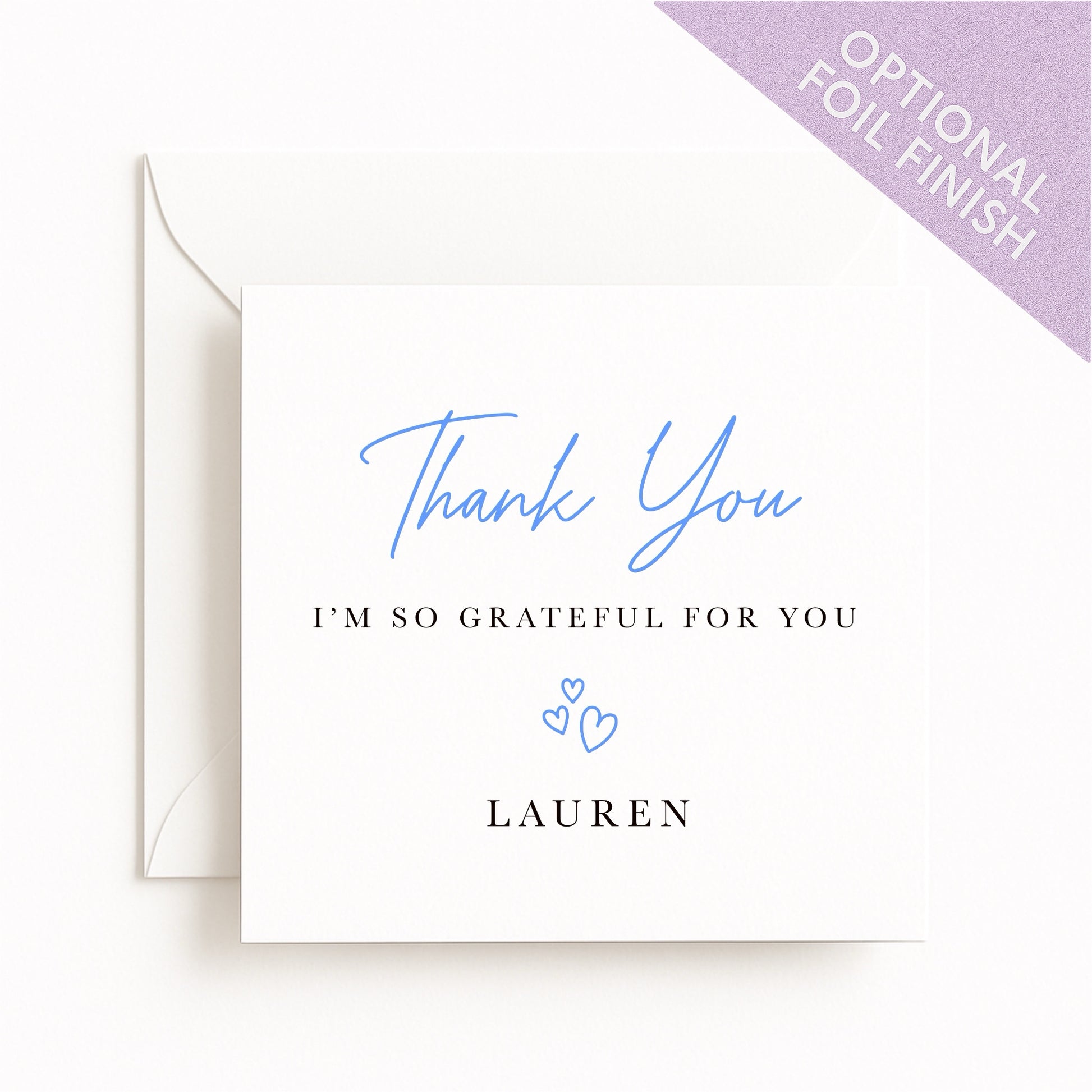 Printed on thick white cardstock with optional foil detailing, it’s perfect for expressing gratitude to friends, teachers, or loved ones.