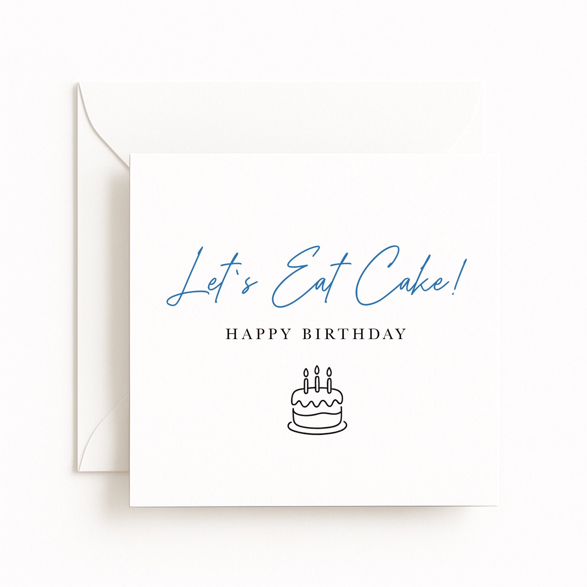 A clean, contemporary design with cheerful blue script and a simple cake illustration — perfect for any age or gender, add an optional real foil finish.