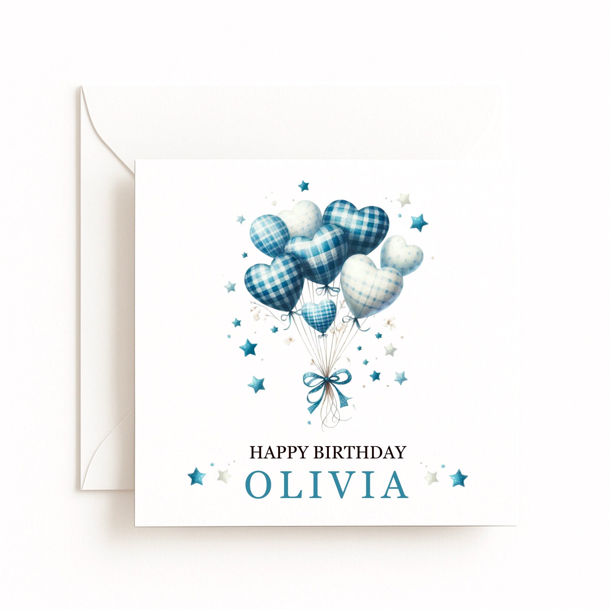 Make their day extra special with this personalised birthday card, featuring a modern balloon design with stars and a clean white background. This handmade card can be customised with any name, age or message, making it the perfect choice for milestone birthdays or everyday celebrations.