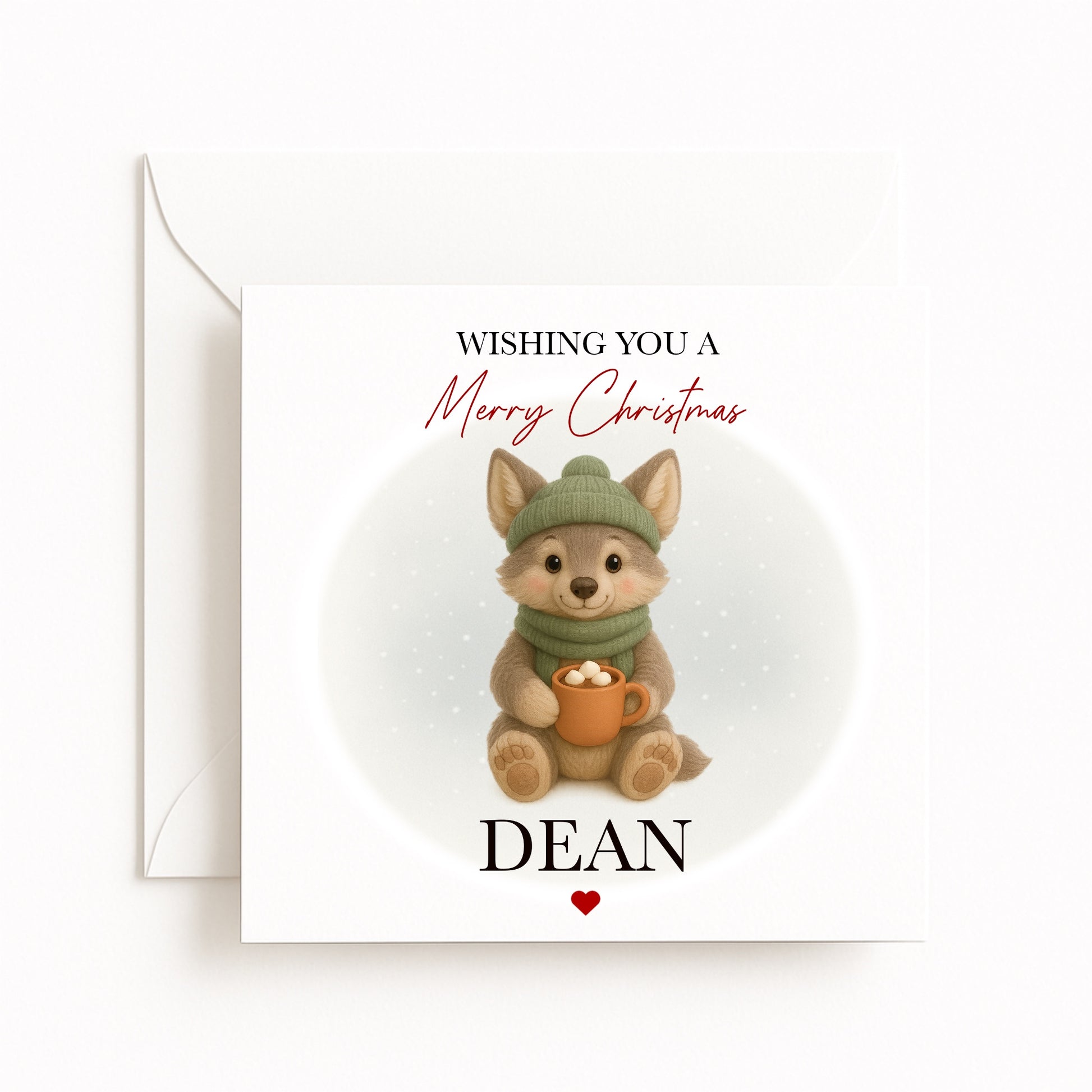 Send a warm and thoughtful Christmas greeting with our Cosy Character Christmas Cards — a charming collection of soft winter illustrations featuring a cute wolf wrapped up snug with a festive hot chocolate in hand.