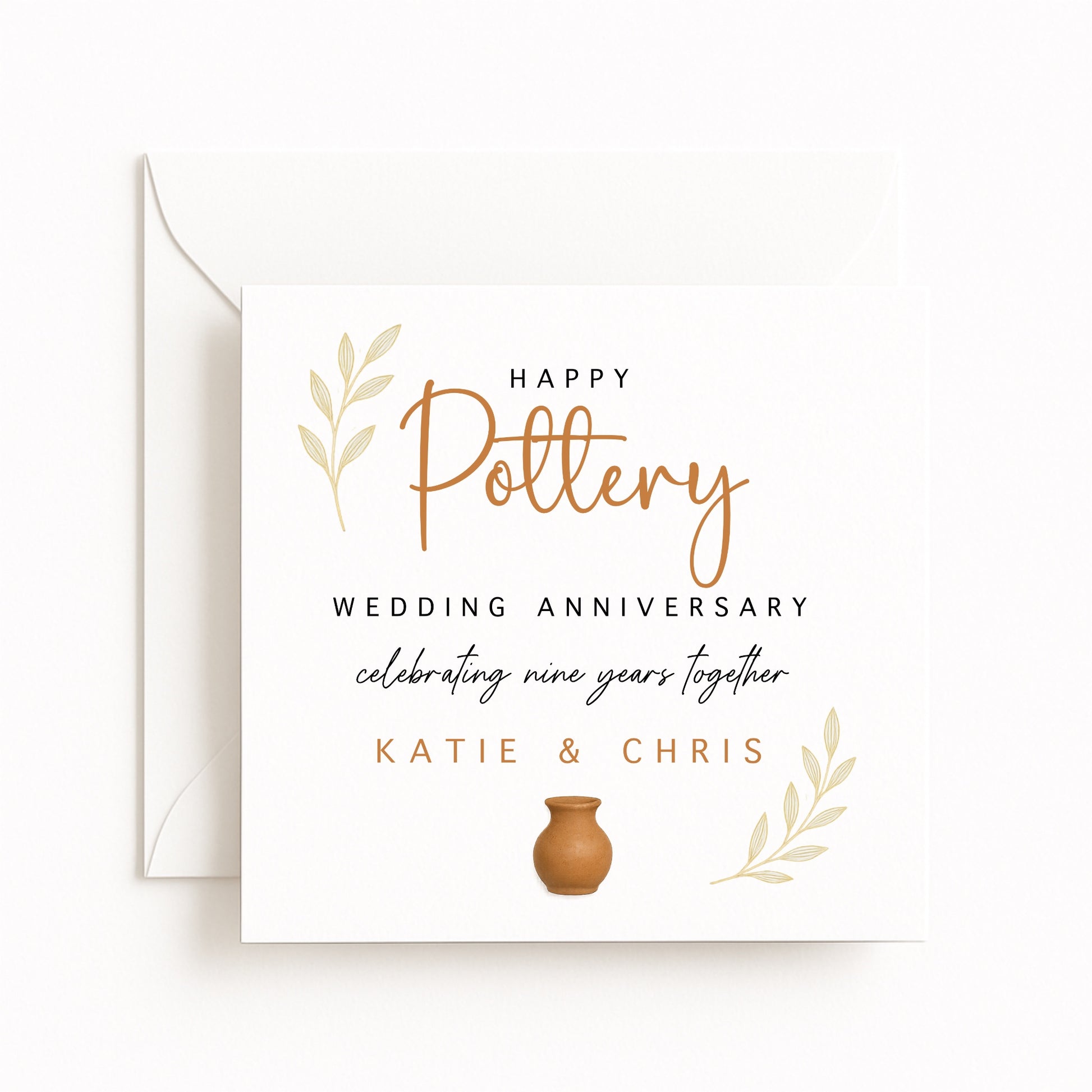 Mark nine years of marriage with this Pottery Anniversary card, designed with a terracotta pot detail and soft golden leaves. A beautiful celebration of love that’s shaped and strengthened over time.