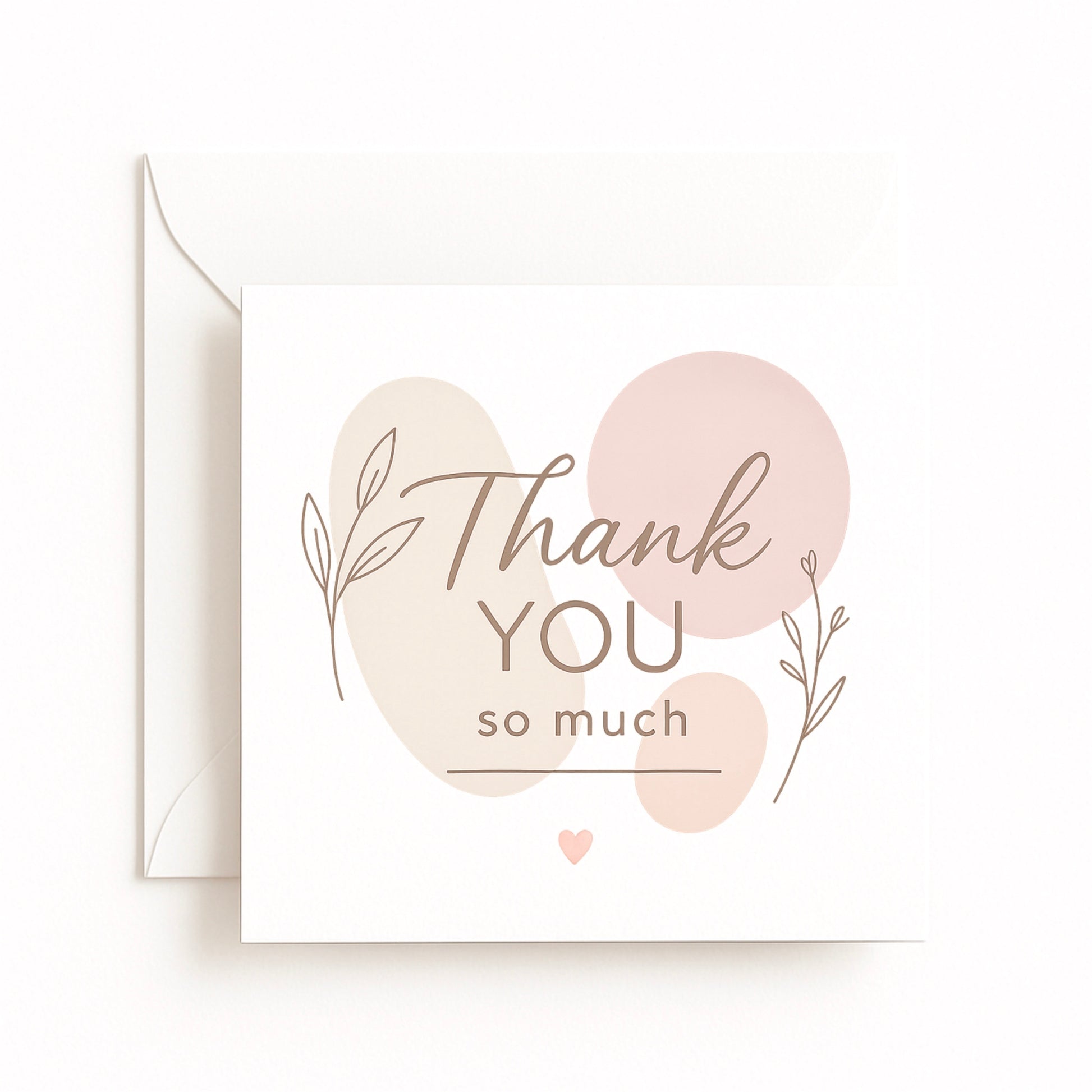 A modern minimalist thank you card in neutral tones with delicate botanical accents. Ideal for any occasion — weddings, business, or everyday appreciation.