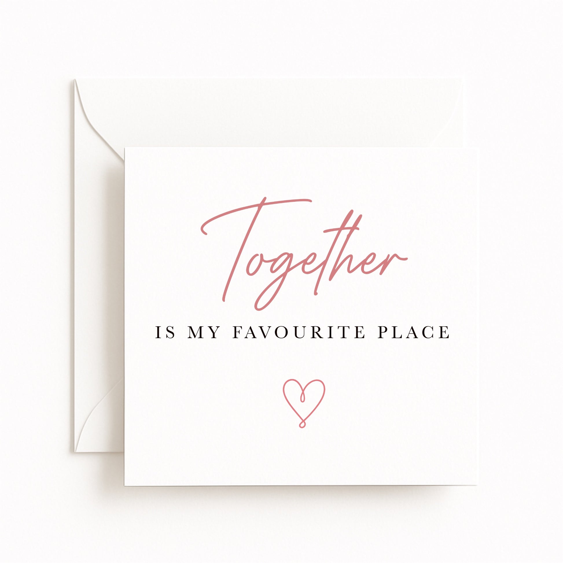 A beautiful and sentimental “Together Is My Favourite Place” card — perfect for Valentine’s Day, anniversaries, or just because. The clean modern design and elegant script make it a timeless keepsake to express your love, add an optional real foil finish.