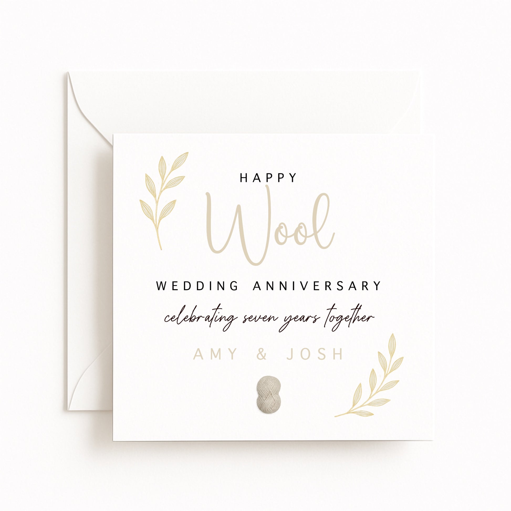 Celebrate seven years of love and warmth with this Wool Anniversary card, featuring a soft cream yarn motif and elegant foliage details. A timeless design that perfectly captures comfort and connection.